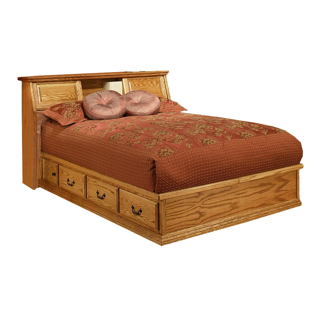 OD-O-T456-Q and OD-O-T462-Q - Traditional Oak Pedestal Bed with Bookcase Headboard - Queen Size - Oak For Less® Furniture